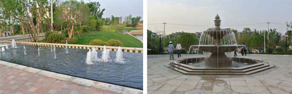 受中國傳統(tǒng)文化的影響,中國人喜歡靜觀或觀靜,現(xiàn)代小區(qū)水景設(shè)計一方面可以滿足人們對居住環(huán)境安靜舒適的需求,另一方面通過適宜小區(qū)環(huán)境尺度的噴泉、涌泉、疊泉等動水,增加小區(qū)環(huán)境的生氣及靈動性,給人們以感觀的刺激,用水的動態(tài)之美與水聲之美讓身處鬧市之郊的居民體會"山水有清音"的意境與自然美景。