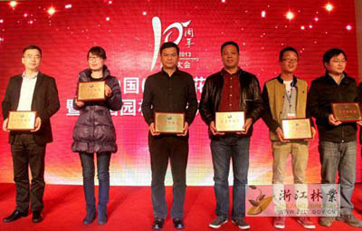 大會(huì)揭曉并頒發(fā)了“突出貢獻(xiàn)獎(jiǎng)”、“貢獻(xiàn)獎(jiǎng)”、“最佳合作伙伴獎(jiǎng)”、“2013年優(yōu)秀參展獎(jiǎng)”、“2013年產(chǎn)品金獎(jiǎng)”等多個(gè)獎(jiǎng)項(xiàng),以此表彰一批多年來(lái)為中國(guó)(蕭山)花木節(jié)的成功舉辦做出積極貢獻(xiàn)的個(gè)人和單位。其中,杭州市園林綠化工程有限公司榮獲“最佳合作伙伴獎(jiǎng)”、“2013年優(yōu)秀參展獎(jiǎng)”,參展的產(chǎn)品“紅寶石”紫薇和“火煉金丹”桂花榮獲“2013年優(yōu)秀產(chǎn)品獎(jiǎng)”,總經(jīng)理張炎良上臺(tái)領(lǐng)取了獎(jiǎng)牌。