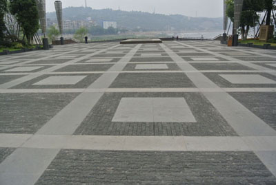 館驛嘴廣場不僅要成為城市的一處標志性景觀,更要能經(jīng)得起洪水的考驗,這就對廣場的功能和鋪裝材料提出了更高的要求。