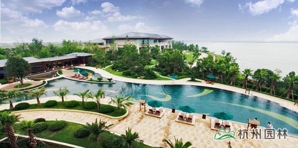 如今,走進(jìn)吳江東太湖溫泉度假酒店,開闊大氣的入口景觀,整齊劃一的行道樹,道路兩側(cè)花境式的植物組團(tuán),首先帶給人一種高端、原生態(tài)的感覺。隨著蜿蜒的園路不斷延伸,更多的園林美景一一呈現(xiàn):開闊的草坪起伏有致,自然式的花境布置清新雅致,造型獨(dú)特的黑松、女貞盡顯莊嚴(yán)華貴,婚禮草坪處處充滿浪漫氣息,露天泳池彌漫著濃郁的熱帶風(fēng)情,溫泉泡池區(qū)懷舊氣息撲面而來,湖邊的觀景平臺則將自然美景盡收眼底……大氣中盡顯華貴雍容,細(xì)節(jié)中隨處可見精致品味,文化氣息處處流轉(zhuǎn),自然美景比比皆是,園林與建筑渾然一體?!半m由人作,宛自天開”,是對該項(xiàng)目最凝煉的贊譽(yù)。