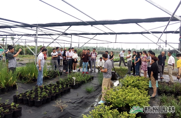 下午,杭州市園林綠化股份有限公司研發(fā)中心技術(shù)員劉華紅帶領(lǐng)大家來到畫境?徑山生產(chǎn)中心進(jìn)行實(shí)地參觀。結(jié)合研發(fā)中心開展的一個(gè)除草劑試驗(yàn),劉華紅向大家介紹了試驗(yàn)的設(shè)計(jì)思路、處理設(shè)置,展示了拔綠(Barricade)、莠去津(Atrazine)等4種除草劑不同濃度處理的除草效果,初步指出正常用量的拔綠對多種庭院植物容器苗的除草效果較好。
