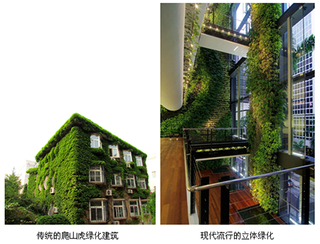 立體綠化的主要形式為立體綠化墻,也稱植物墻或綠墻,是近年來興起于法國(guó)的一項(xiàng)用于墻面垂直綠化的新技術(shù)。過去用于垂直綠化的植物只有大家熟悉的爬山虎、紫藤等,但是這些植物缺乏常綠、觀花、觀果的觀賞效應(yīng),而且還要引導(dǎo)植物攀爬墻面,搭棚架、立柱,幾年以后才成氣候,比較麻煩。而如今的立體綠化墻是一個(gè)小型生態(tài)系統(tǒng),它可以根據(jù)客戶需要,結(jié)合氣候、溫度、濕度、色彩等綜合條件,選配四季長(zhǎng)綠或色彩豐富的植物,隨時(shí)在人們想要的地方構(gòu)建出一個(gè)貼近自然又超脫自然的生活環(huán)境。當(dāng)在屋頂、墻面等覆蓋了適當(dāng)?shù)闹脖缓?,大量的熱氣和紫外線都會(huì)被植物抵擋,這層植物墻能夠使其表層溫度降低15°C左右,夏天基本可以不需要依賴空調(diào)。而且植物墻能消除墻面對(duì)陽(yáng)光的反射,使走在大街上的人們不受陽(yáng)光干擾,感受到?jīng)鏊耐瑫r(shí)也避免眼睛被強(qiáng)光照射。到了冬天,植物墻又具有保溫的功能,這種方式非常低碳節(jié)能,并且更健康。