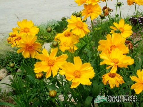 金雞菊,葉片多對生,稀互生、全緣、淺裂或切裂?;▎紊蚴鑸A錐花序,總苞兩列,每列3枚,基部合生。舌狀花1列,寬舌狀,呈黃、棕或粉色。管狀花黃色至褐色。既耐寒又耐干旱,pH 5-7都可以種植,很容易栽培。也常用于綠化栽培。特點(diǎn)是繁殖力極強(qiáng),有時(shí)成了半野化種。除了代表性的黃色外,還有重瓣等品種。