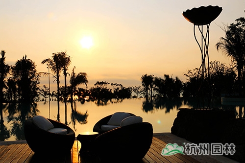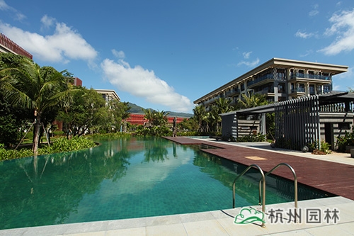 項(xiàng)目位于海南省三亞市亞龍灣椰風(fēng)路南部,整體景觀顯得張弛有度,開闊大氣的廣場鋪裝、宛若綠色地毯般的草坪、色彩豐富長勢茂盛的植物、藍(lán)寶石般的碧藍(lán)泳池……規(guī)整中不失自然,簡潔中深藏精致,盡顯現(xiàn)代主義風(fēng)情的園林美景。