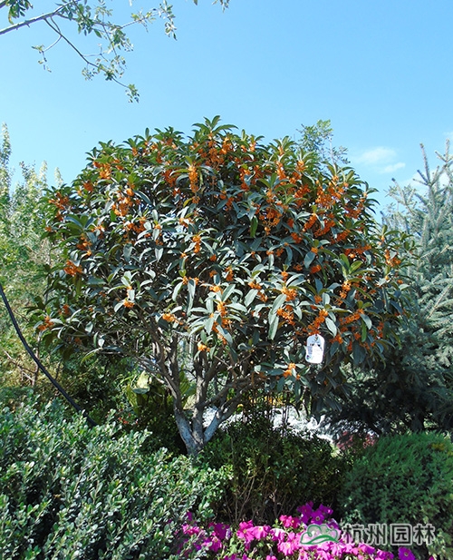 “浙江園”里應(yīng)用的桂花品種以丹桂和銀桂為主,共計(jì)50余棵,包括大喬木和小球類。為保證開園期間的觀賞效果,這些桂花被提前運(yùn)送至銀川,利用當(dāng)?shù)氐牡蜏丨h(huán)境誘使其完成花芽分化,終于在九博會開園時營造出了桂花滿樹、滿園飄香的氛圍。