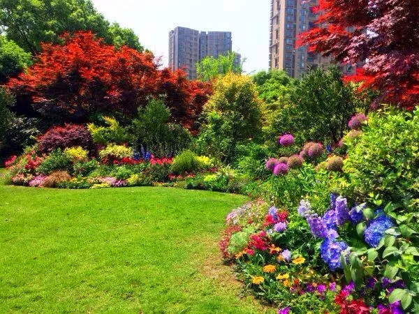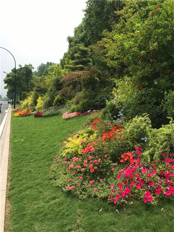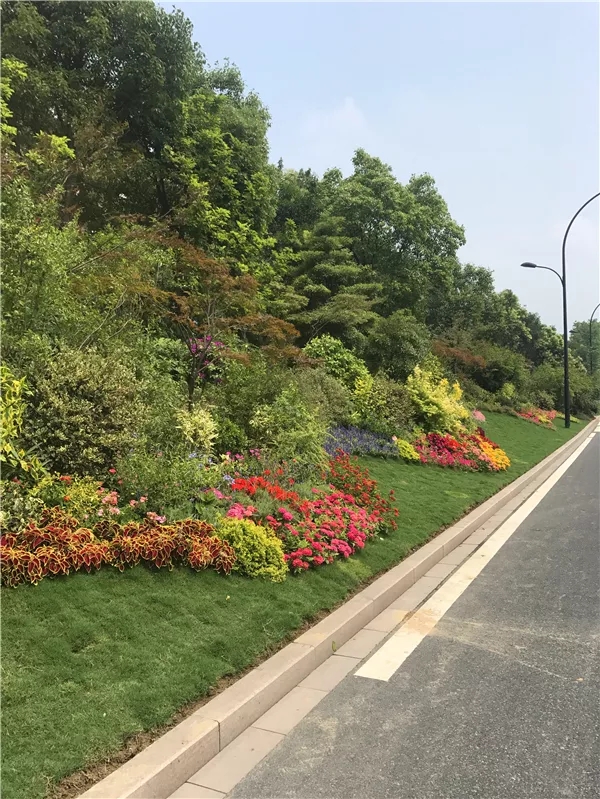 在植物搭配方面,花色搭配既要美觀,又要自然,避免使用強(qiáng)烈的對(duì)比色,群落配植要遵循疏密有致原則,保證每株植物都能各有所美。