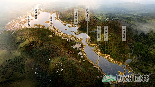 本次提升設(shè)計(jì)范圍包括整個(gè)湘湖水域、環(huán)湖綠地以及東西岸山脊間的山體。