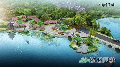 依據(jù)湘湖內(nèi)部自北向南的五堤,各堤路賦以色相植物,打造湘堤紫雨、越堤紅梅、楊堤秋染、長(zhǎng)堤金風(fēng)、賀堤碧玉。