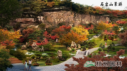 結(jié)合石巖山上有先照寺、一覽亭遺址,補(bǔ)充秋色葉樹種,突出石巖望秋的意境,結(jié)合鵝鼻峰八仙采藥的傳說布置牡丹草藥園,展現(xiàn)湘湖養(yǎng)生文化。
