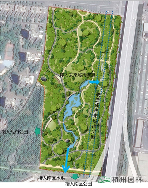 江干區(qū)東湖路市民公園位于東湖路與九喬街西南角,毗鄰九月庭院和泊林印象小區(qū),是江干區(qū)“一帶生態(tài)功能區(qū)”的“運(yùn)河—錢塘江—東湖路”U型生態(tài)軸的重要節(jié)點(diǎn)。結(jié)合已建成公園和高架互通施工預(yù)留地,對(duì)東湖路市民公園進(jìn)行統(tǒng)一規(guī)劃。
