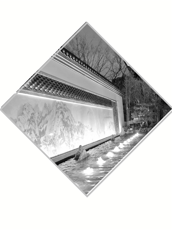 園區(qū)主入口,游人一進(jìn)園,就能看到大瀑布和亭子,再加上富春山居圖造壁,呈現(xiàn)出浙江山水風(fēng)景特點(diǎn)。浙江省地形復(fù)雜,其中三分之二的面積是山地丘陵,所以,浙江園也是依此而建的。為了能讓往來(lái)的游客在進(jìn)園時(shí)就直觀的感受到這種景觀效果,盧山和團(tuán)隊(duì)為游客們?cè)O(shè)計(jì)了兩條游覽線,一條從入口進(jìn)來(lái)之后向山上走,體驗(yàn)登高望遠(yuǎn),感受山林景觀的游覽過(guò)程;還有一條是從庭院路線走的,就是讓游客有行走在家宅的感覺(jué)。在設(shè)計(jì)時(shí),盧山選取了明清時(shí)期的建筑形態(tài),粉墻黛瓦。建筑上層是黑的,墻是白的,展現(xiàn)出浙江傳統(tǒng)建筑的文化元素。盧山還說(shuō):“眾所周知,浙江的茶葉非常有名,我們?cè)谡箞@里打造成了一個(gè)茶山景觀,再配上一些花卉??傮w上,是要展示出一個(gè)富美浙江主題的庭院?!?/p>