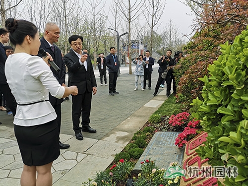 杭州市園林綠化股份有限公司董事長吳光洪(右二)陪同中央政治局委員、北京市委書記蔡奇(左二)參觀浙江園