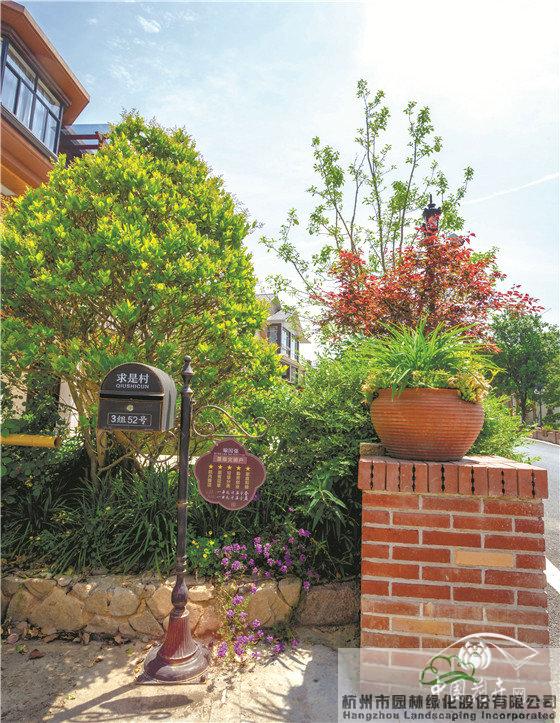 梅秋里的房屋多為兩到三層建筑,但建筑風(fēng)格、外墻立面均有區(qū)別,因此,在進(jìn)行景墻施工時(shí),根據(jù)每家的房屋建筑特色選擇了不同的材料和植物配置手法。如,建筑外立面為紅色的,景墻以紅色磚為主,搭配月季、佛甲草等植物;建筑外立面為灰色的,景墻以淺黃色磚為主,結(jié)合小木樁或仿竹籬笆,搭配石竹、美女櫻等植物;建筑外立面有大理石點(diǎn)綴的,景墻以桐廬石為主,輔以裝飾過的輪胎,點(diǎn)綴佛甲草、常春藤等植物。不同的處理手法,使得家家戶戶的景墻既有連續(xù)性,又有各自的風(fēng)格。