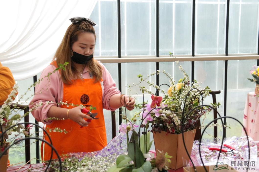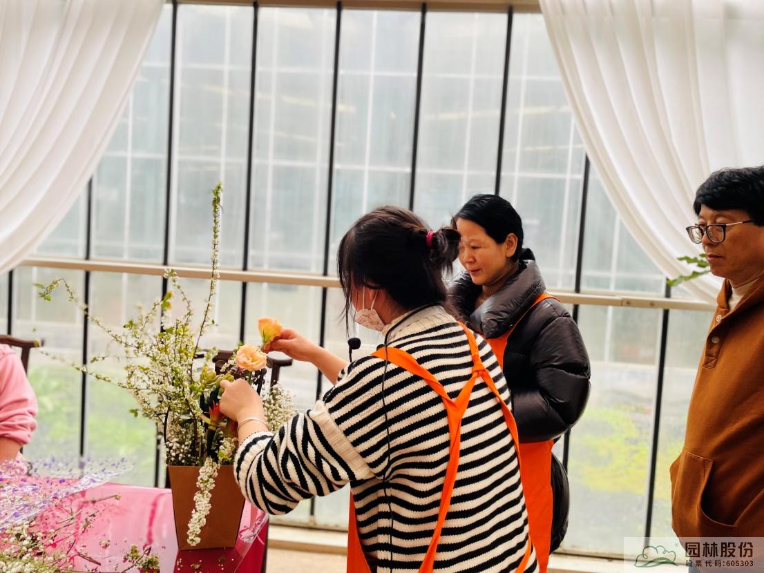 隨后,花藝師從花材的介紹,插花工具的選擇和使用,到插花的修剪、不同花材造型制作等,用通俗易懂的語言向大家講述插花技巧。