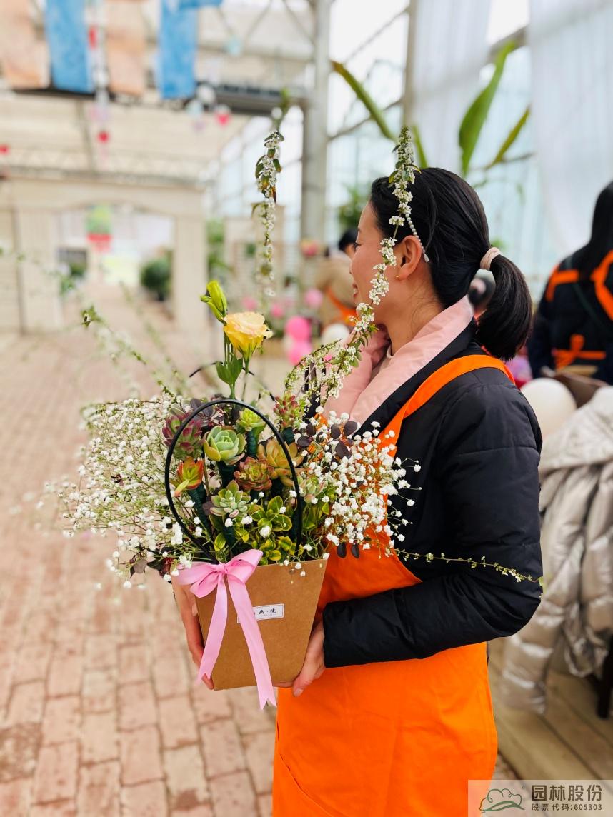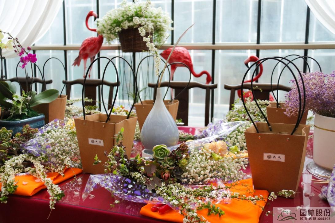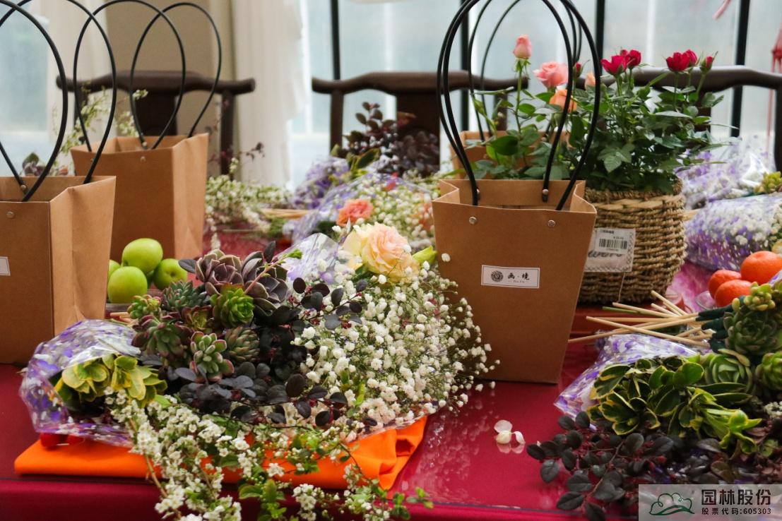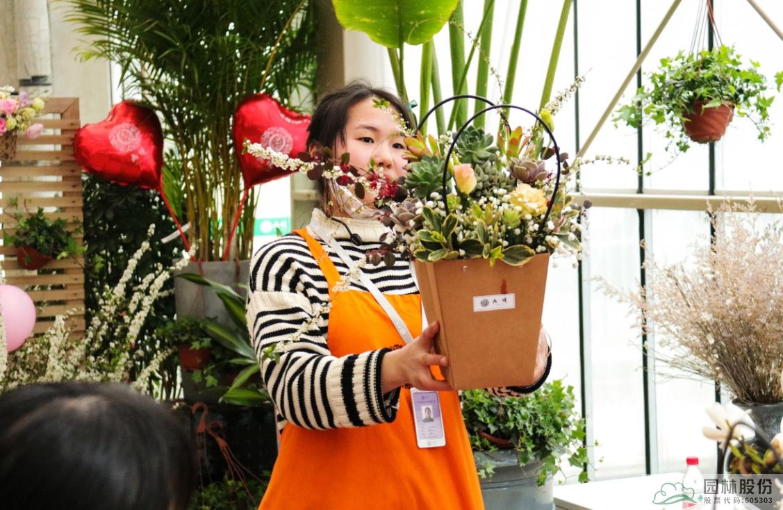 這些花材會像變魔術一樣組合成一盆盆精美的手拎禮品袋鮮花,如花藝師手上演示的這一盆,是不是很期待呢?