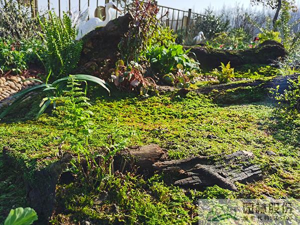 ②選用大灰蘚等適應(yīng)性極強(qiáng)的苔蘚植物種類作為蘚類濕地景觀本底植物材料,并在枯木上、局部小景觀中選用細(xì)葉小羽蘚等較耐旱的苔蘚植物種類,豐富蘚類濕地景觀。