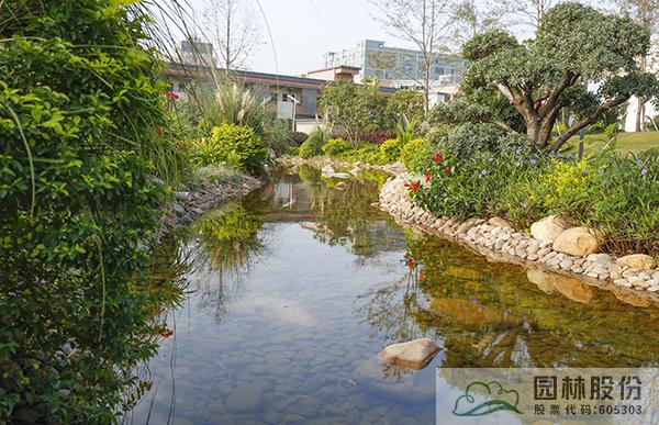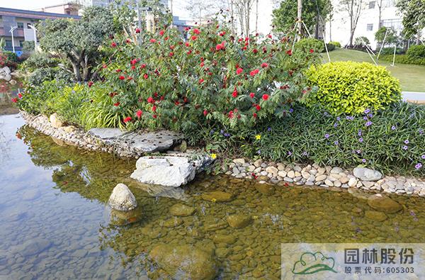 融入海綿城市理念打造的旱溪景觀,用鵝卵石鋪裝,點(diǎn)綴景石,岸邊種植造型水蠟、楊梅、蘆葦、蒲草、三角梅、黃金葉、黃金榕、朱蕉、扶?;?、變?nèi)~木、紅千層等當(dāng)?shù)剜l(xiāng)土植物,打造生態(tài)環(huán)保的地域特色景觀風(fēng)貌。