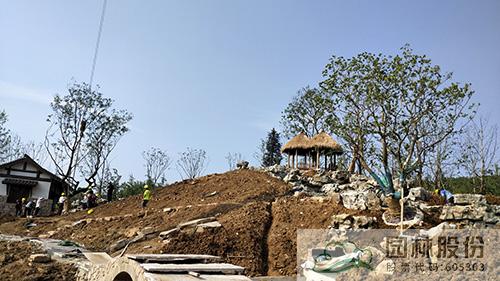 自今年四月份開工以來,杭州園的各項工作進展有序。截止目前,主體建筑、水系跌瀑、溪流假山等基本完工,大部分鋪裝已經(jīng)完成,展園景觀風(fēng)貌初見雛形。接下來主要進行喬木和大灌木的種植工作。正值夏季高溫時節(jié),為提高樹木的成活率,施工中多措并舉,提前將挑好的大樹進行修剪、斷根、噴灑營養(yǎng)液;采用通氣透水的材料包裹土球,進行容器假植;制定精細澆水養(yǎng)護方案等,使植物清涼度夏,早日綻放風(fēng)華。