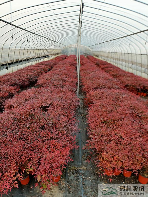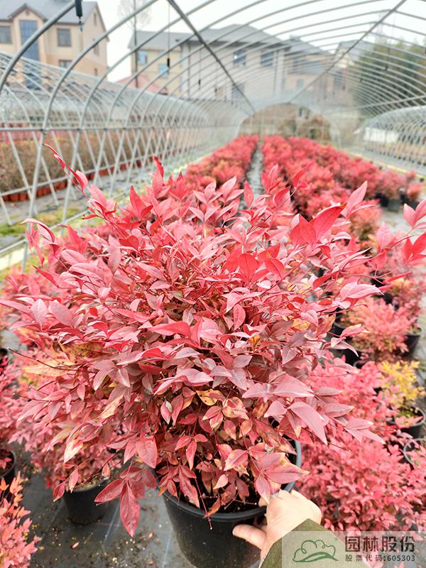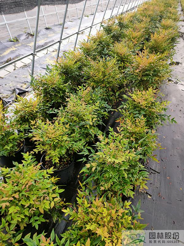 【哈伯南天竹】株型低矮且飽滿,葉姿平展,整齊度高,生長量較大;葉色變化豐富,春季新葉黃綠色,入夏后轉(zhuǎn)為深綠色,秋季隨著溫度降低,特別是降霜以后,秋梢新葉變鮮紅色,老葉則變?yōu)榘导t色;三年以上開始著花,花白色呈串狀,偶見果。