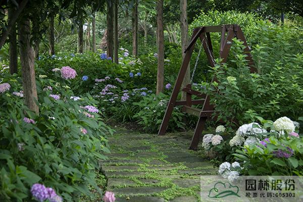觀景賞花,入目繡球朵朵,遠山綠水環(huán)繞,心隨秋千蕩漾……