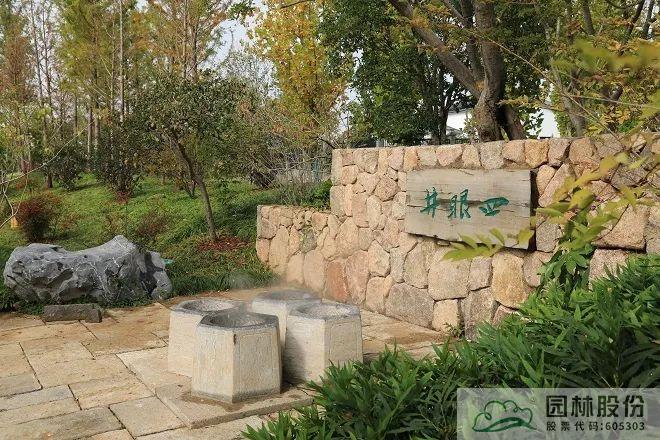 茅草雙亭有兩塊匾額,一塊是“問茶”,一塊是“聽泉”,“問茶亭”正前方的幾株茶樹是茶園的點(diǎn)睛之筆,設(shè)計靈感取自“西湖龍井十八棵御茶”。在亭子前還有一處泉眼——“滌心”?!皽煨摹笔乔』实塾}的“龍井八景”之一,寓意溪水清澈,心靈清凈。站在茅草亭內(nèi),可以看到一片翠綠的龍井茶園。茶葉的清香隨風(fēng)吹來,潺潺流水聲縈繞在耳畔,展現(xiàn)了西湖人問山、問水、問茶的游賞情致。