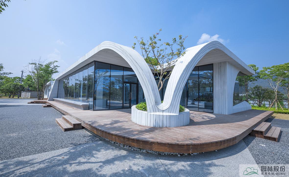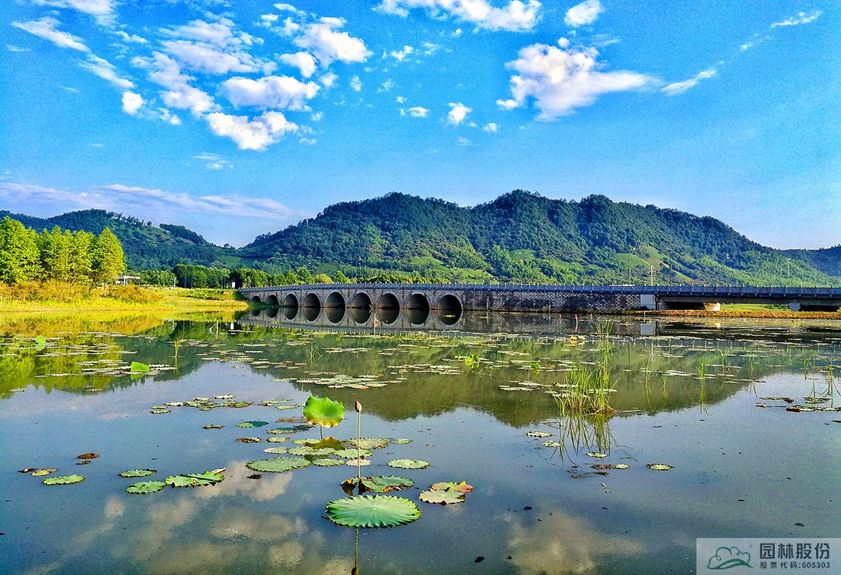 項目利用中心湖蜿蜒的湖灣和眾多洼地,引水入園,形成沿湖而生的各個景點。湖區(qū)背山面水,視線開闊,能遠望城市。沿線眾多湖灣處,設置各色景觀橋連通內(nèi)塘與外湖的生態(tài)通道,同時景觀建筑依水而建,與周邊景色相映成趣。