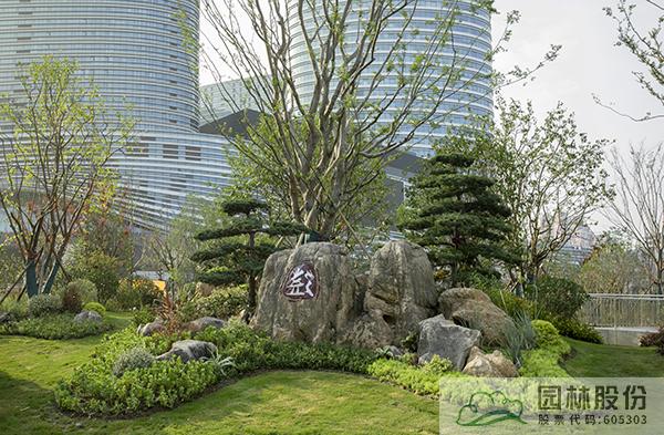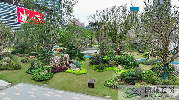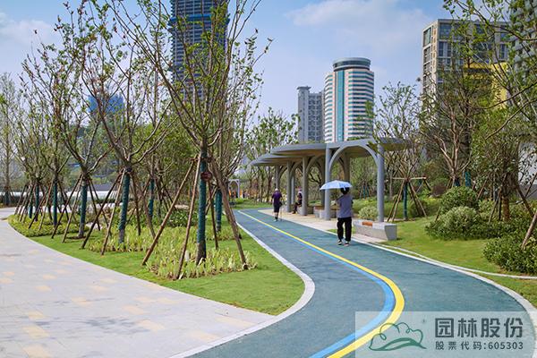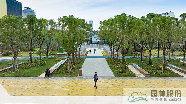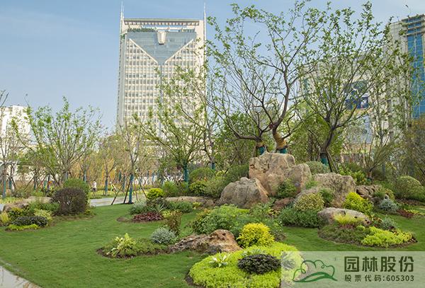 項目注重新優(yōu)植物的應(yīng)用,行道樹采用娜塔莉、中心廣場通道兩側(cè)綠地種植美國紅楓、中心廣場內(nèi)種植銀杏樹等色葉樹種。翠綠的枝葉相互掩映,樹下設(shè)有林蔭座凳,夏季可有“大樹成蔭”之景,市民可觀賞可乘涼,充分感受自然野趣。主道路行道樹為染井吉野等開花與色葉樹種,周邊綠地采用混合花境置石結(jié)合的配置手法,時花、低矮花灌木與景石自然搭配,并大量應(yīng)用了公司自主研發(fā)的繡球新品種,營造景觀豐富的長效花境景觀。