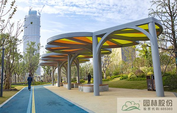 在跑道沿途,有4處可供歇息的銀杏廊庭(時光驛站),廊庭頂部設(shè)計為黃褐色的銀杏葉交錯重疊,充滿自然生趣,讓銀杏“市樹”文化擁有了更具體的功用。