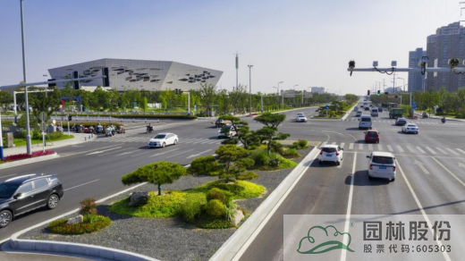 打破原有道路植物種植形式單一,品種較少,冬季落葉草本花卉較多,與道路西側(cè)景觀難以呼應(yīng)的不足,改造后的中央隔離帶,在道路兩端島頭位置,用國產(chǎn)造型黑松替代性價比不高的日本造型黑松,以造型黑松樁點綴,中間段則采用常綠植物和自然式花境,以大小組團形式進行植物造景,在豐富植物品種和種植手法的同時,滿足了冬季景觀效果,并能與道路西側(cè)景觀有機融合。