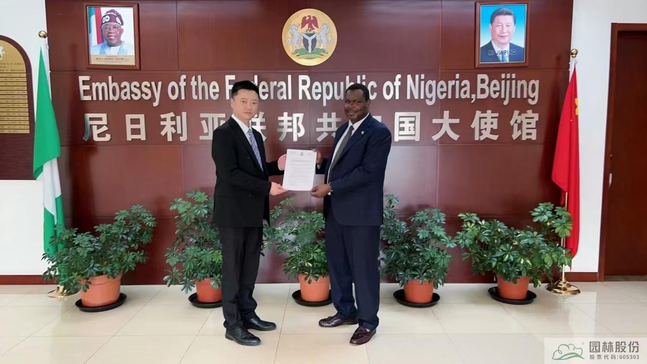 2024年9月,在杭州第三屆全球數(shù)字貿(mào)易博覽會-“數(shù)智中非”產(chǎn)業(yè)對接會上,園區(qū)已取得“尼日利亞國家館”正式授權(quán)。此次拜訪尼日利亞駐華大使館,陳振華與駐華大使巴巴加納·瓦基勒(Babagana Wakil)就國家館建設(shè)、農(nóng)產(chǎn)品貿(mào)易、投資合作等議題進行了深入交流。