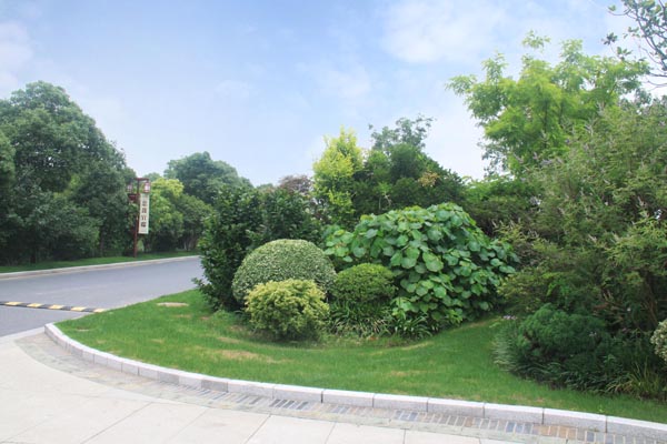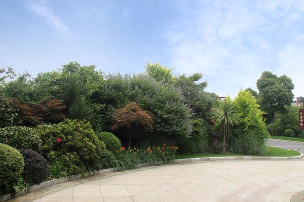 別墅小區(qū)公共景觀的植物配置不但要與建筑、環(huán)境相協(xié)調(diào),還要做到多層次、多樣化、多季相,并創(chuàng)造出植被生態(tài)景觀及其圍合空間的豐富多彩,達(dá)到人與環(huán)境的和諧統(tǒng)一,因此,植物的選擇與配置顯得尤為重要。據(jù)徐建良介紹,工程中的植物選擇與配置遵循三個原則:第一,根據(jù)地域特征,考慮季相變化;第二,根據(jù)建筑空間的大小、遠(yuǎn)近,近景或端景配置觀賞性強的品種,遠(yuǎn)景的植物配置則充分考慮空間天際線及建筑物之間的關(guān)系;第三,充分考慮林下植物和孤賞植物布置的各個方面,突出自然生長特征和人工修整造型植物之間的反差對比。以此為指導(dǎo),上層空間選擇了香樟、合歡、玉蘭、樸樹、銀杏等大規(guī)格喬木,中下層空間種植紅葉石楠、枸骨、杜鵑、鋪地柏、火棘等花灌木和地被,再配以微地形的處理,整個植物造景的林冠線、林緣線及空間層次別具特色,從而使得別墅區(qū)的整體景觀層次分明、色彩豐富,既在統(tǒng)一中富于變化,每個區(qū)域又自成風(fēng)格。特別是每個路口的花境營造,更為小區(qū)增添一抹亮色。