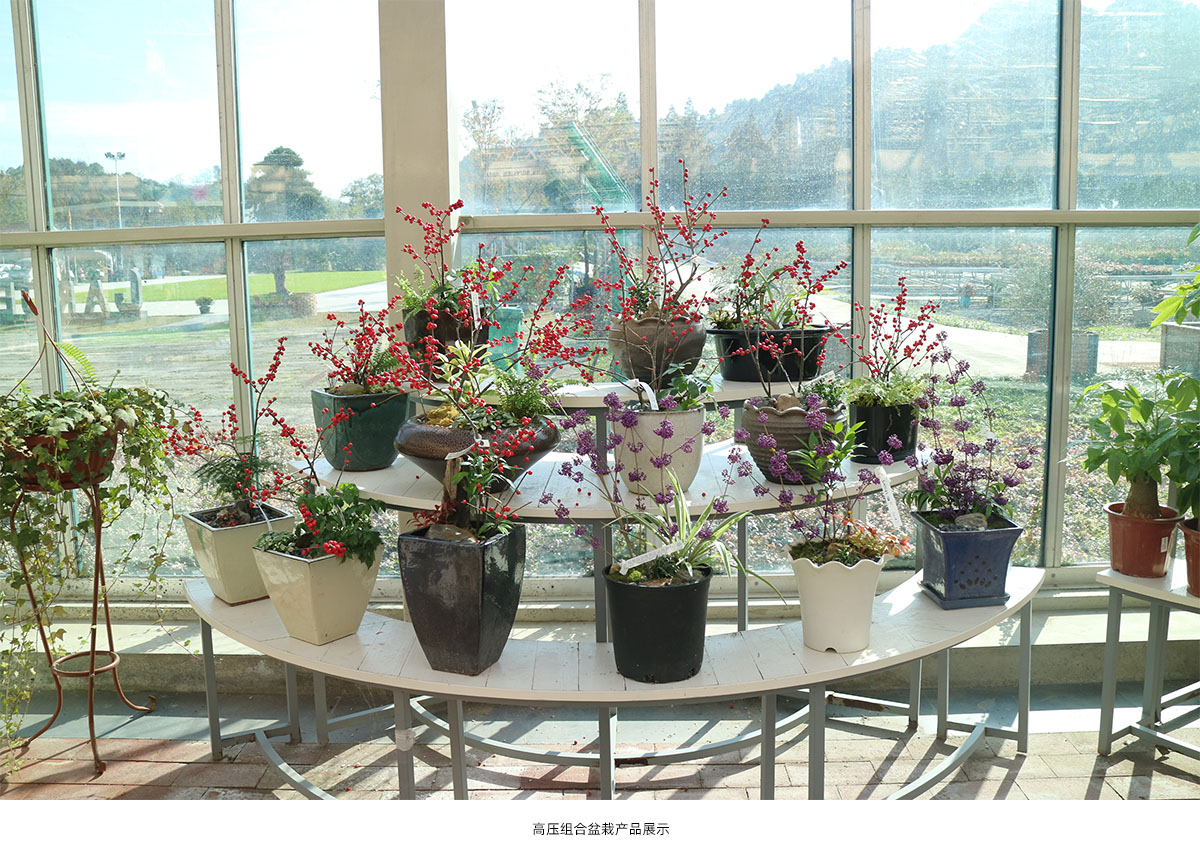 以容器育苗技術為基礎,結合株型控制技術、高空壓條技術和花期調控技術,對上百種園林植物進行深度開發(fā),實現(xiàn)中大型植物小型化和多季開花的目的,有效提高了植物產品的附加值。 (1)容器育苗