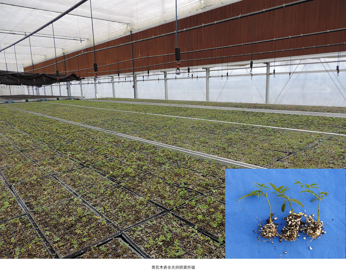 全光照噴霧扦插技術(shù)具有生根期短、成活率高和操作簡單等優(yōu)點。研究院已建立了桂花、冬青、降香黃檀、新優(yōu)宿根植物等數(shù)百種植物的全光照噴霧扦插技術(shù)體系,年度育苗量200多萬。