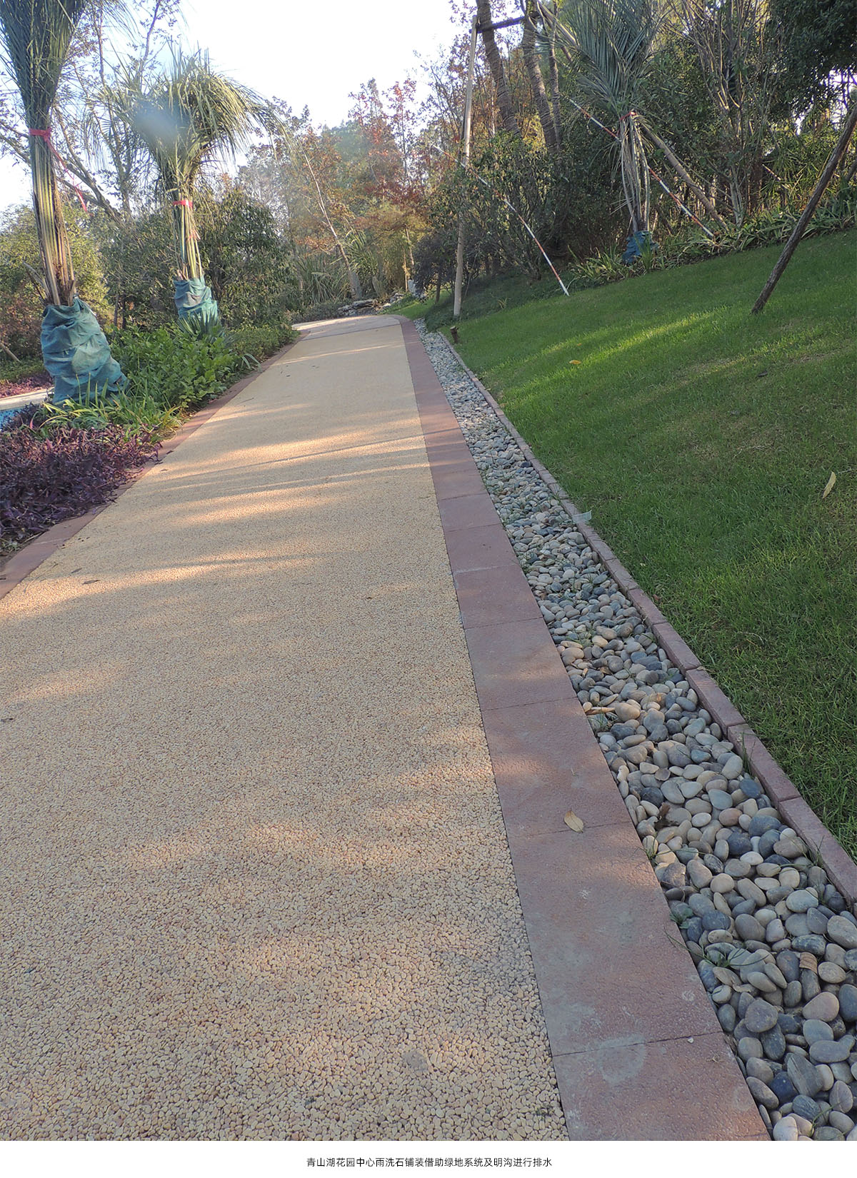 通過對鋪裝材料透氣性、生態(tài)性研究及鋪裝結(jié)構(gòu)層施工工藝改進等措施,結(jié)合園林景觀地形處理、設(shè)置排水設(shè)施等手段,建立生態(tài)型鋪裝體系。